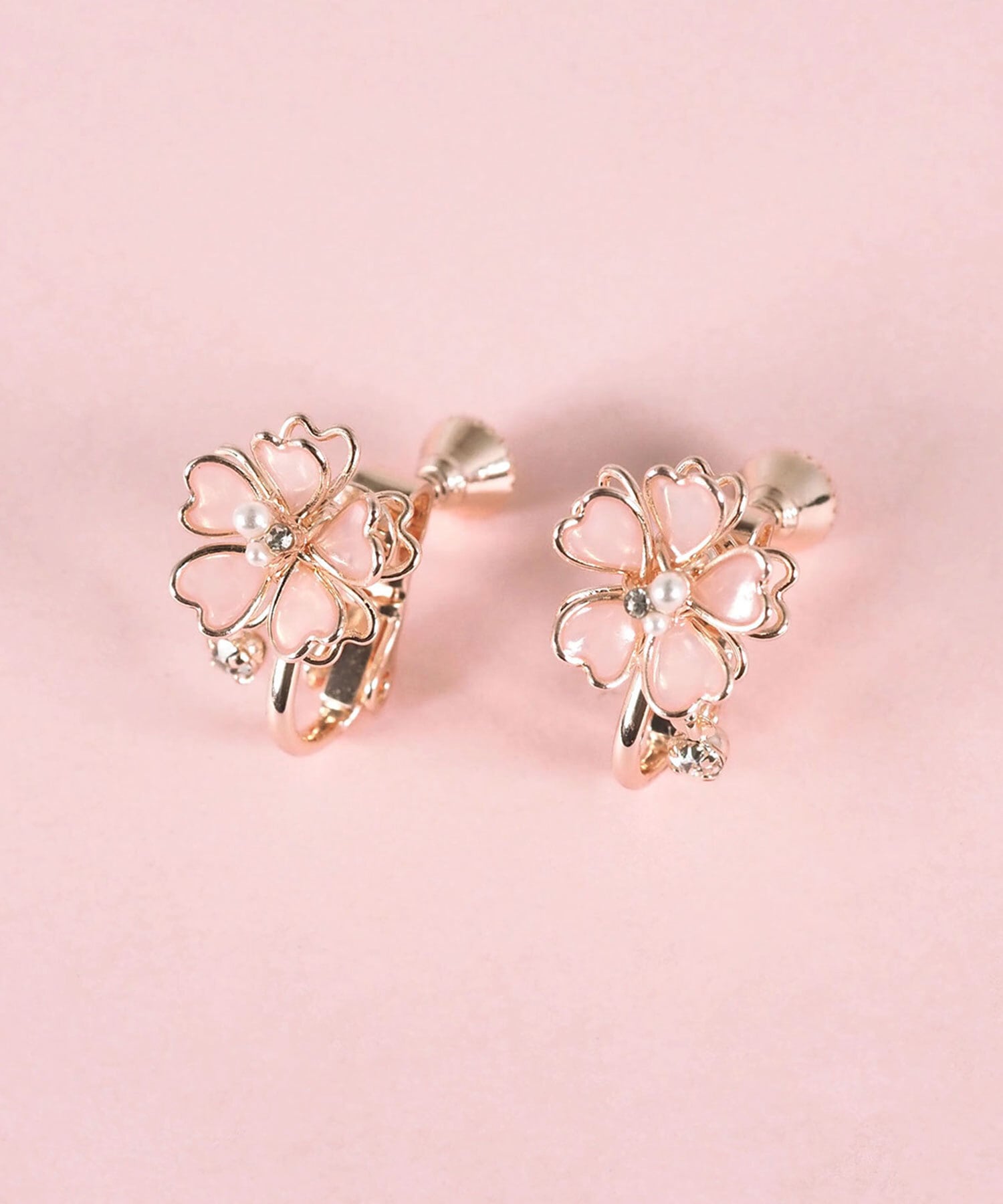 ピンクゴールドのフレームに、透き通るような花びらをあしらった桜(さくら)モチーフイヤリング。立体感のある繊細なデザインが、いつものコーデに上品な甘さをプラスします。控えめながらも華やかな存在感でデイリーから特別な日のお出かけまでどんなシーンにも品よく馴染みます。